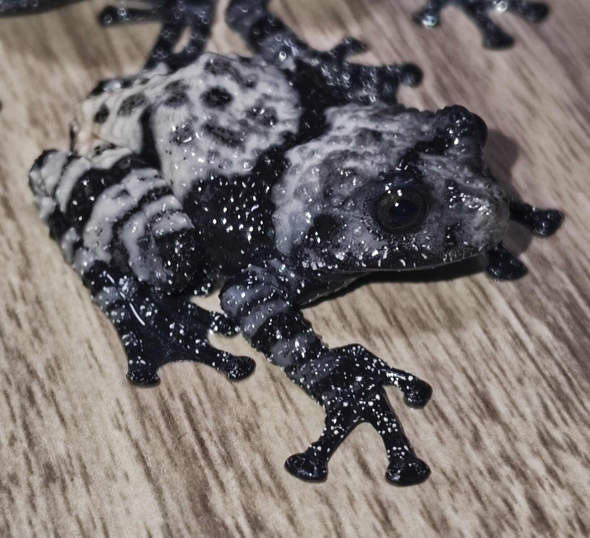 上陸から2-4ヶ月ほどの個体でまだヤミイロコケガエルのアダルトは高価で流通量も少ない事からブリーダーさんの努力の賜物と言えます。